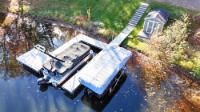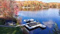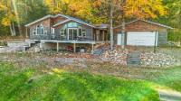 Discover this cute and cozy 3-bedroom cabin nestled on 2 acres of mature hardwoods in the desirable Harrison Hills area known for its trail systems and rolling hardwoods. Enjoy clear, sandy frontage with stunning views of Seven Island Lake and additional vistas of Long Lake across Hwy B. Inside, you’ll appreciate the custom tile bathroom, granite countertops, gas range with five burners, and custom cabinetry, dry bar, and laundry hookup. A small loft adds charm and extra storage space, while the partial basement offers forced-air heat and central A/C with a walkout to the lake. The property also features a 2-car heated garage, lakeside storage shed, a large maintenance-free lakeside deck, and an expansive dock system. Built for relaxation and lake living, this home combines comfort, quality, and beautiful waterfront views—ready for you to enjoy year-round on this full rec lake.