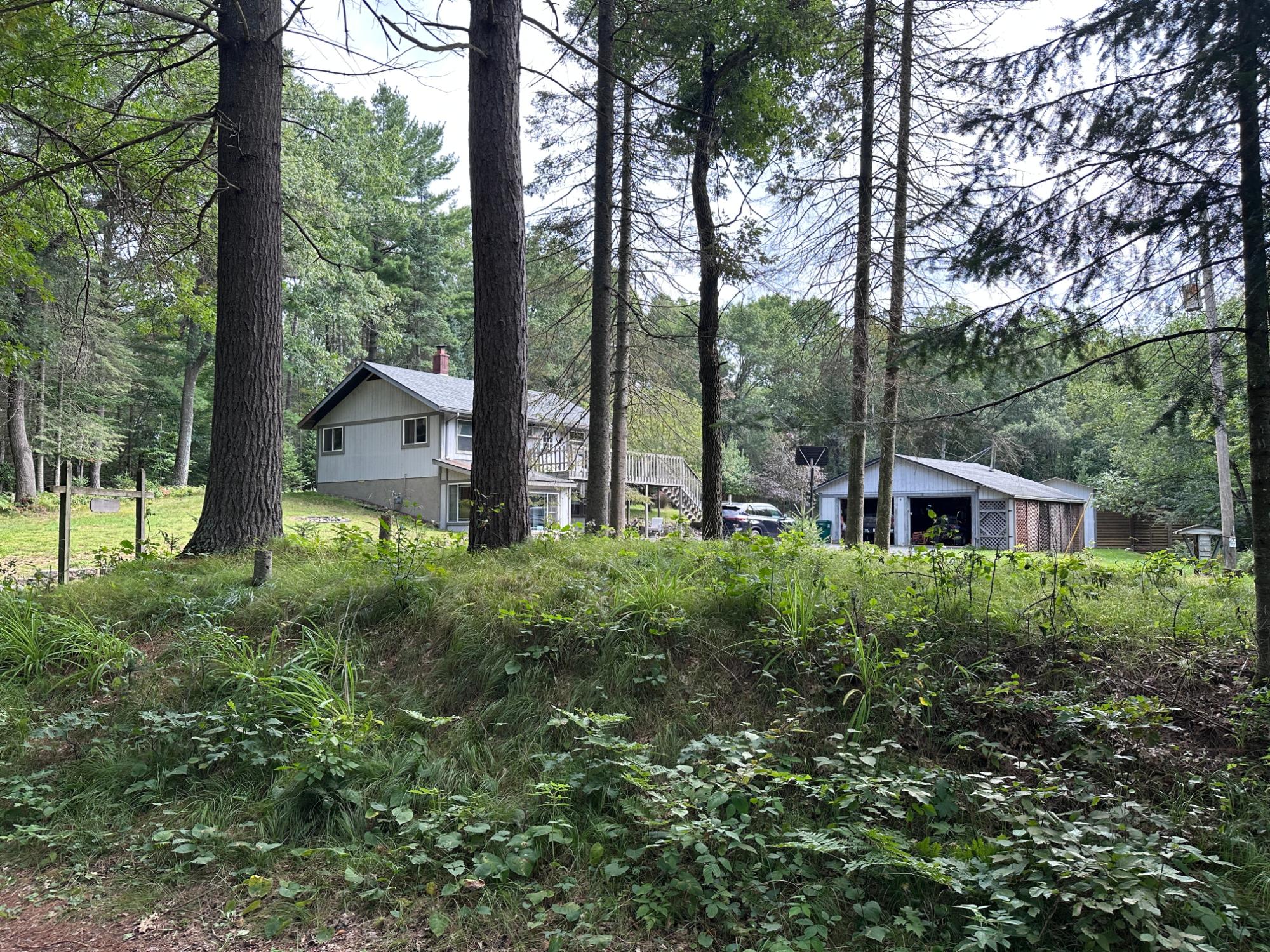 Two bed, two bath home in Nokomis. Partial finished lower level with pellet stove, three season room with nice views, two-car detached garage and large shed, just over six acres, and a pond for the frogs. Close to Lake Nokomis, bars and restaurants.